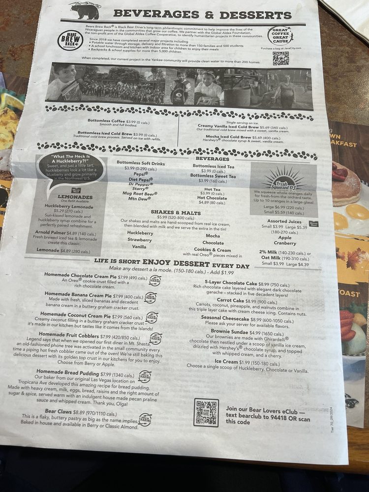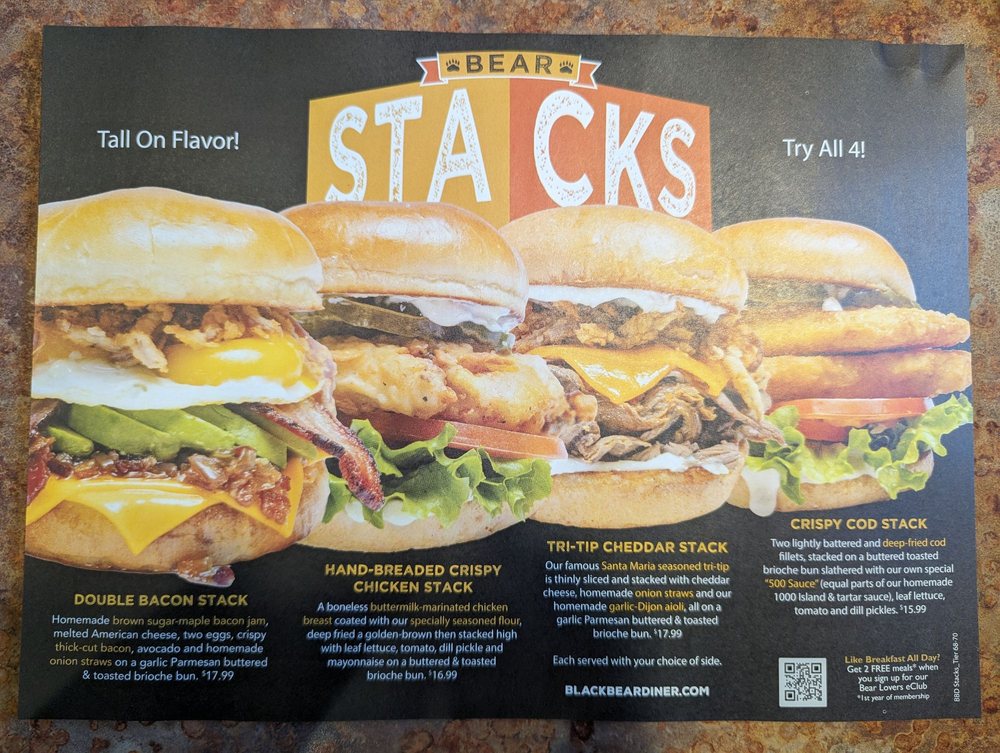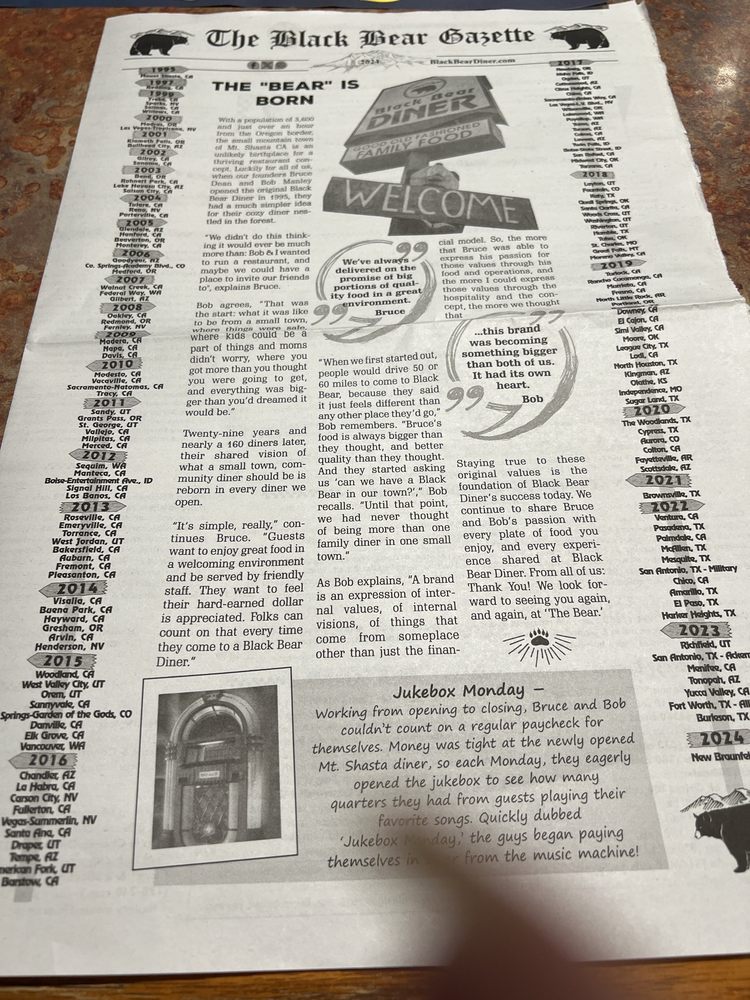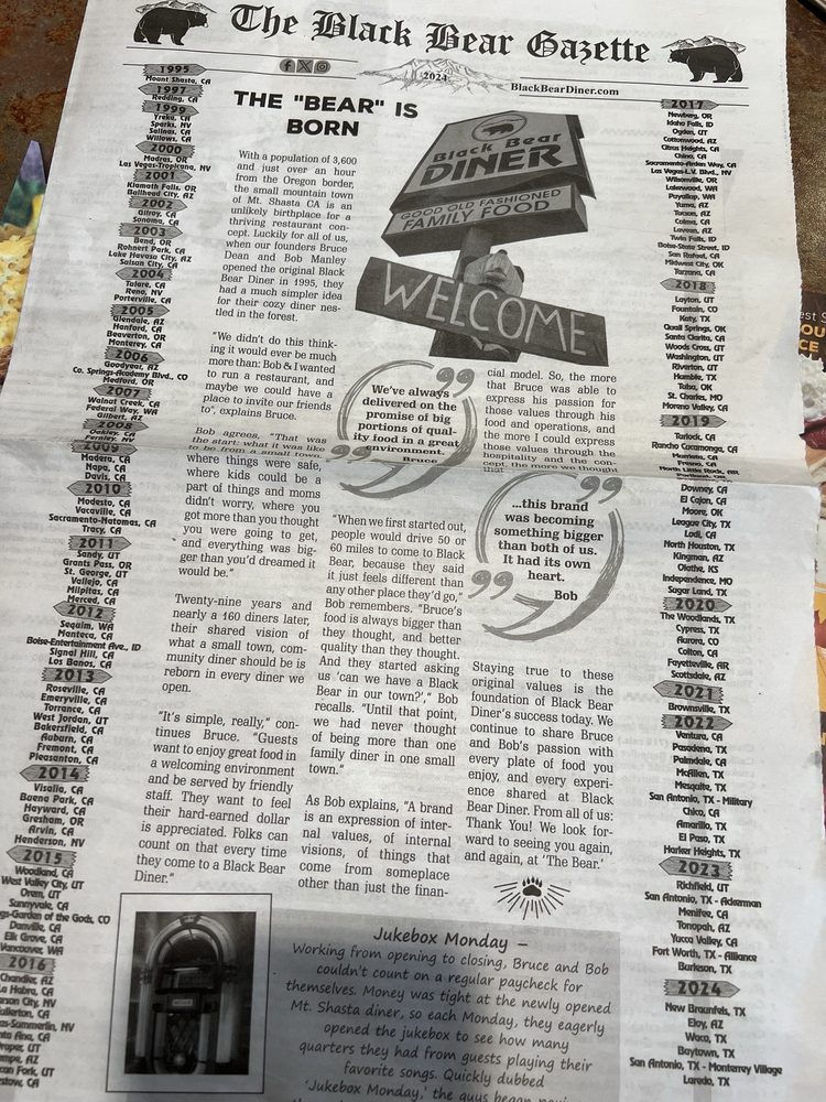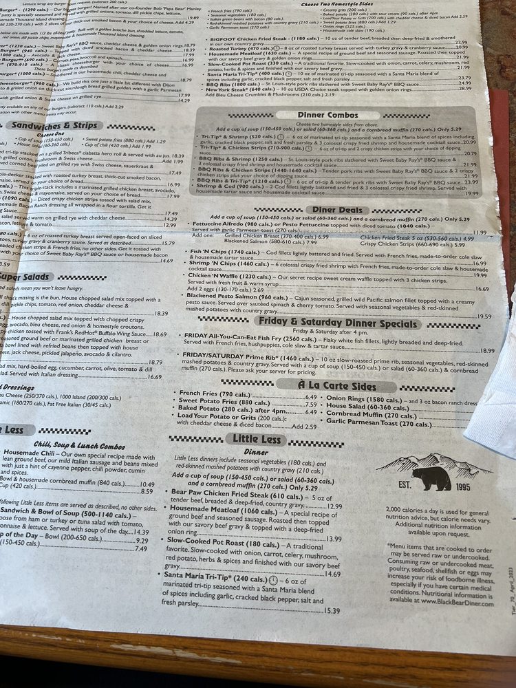 Black Bear Diner in Elk Grove offers a variety of delicious dishes with a focus on breakfast, brunch, lunch, and dinner options. The menu includes classic favorites like sweet cream pancakes, chicken fried steak, and New York steak, all served in generous portions. The diner provides a cozy atmosphere with friendly service and a family-friendly environment. Customers praise the attentive staff, cleanliness, and the extensive menu selection, including many vegetarian options. The reviews highlight the generous portion sizes, with one customer mentioning it was the largest serving they have ever seen. Overall, Black Bear Diner is a popular choice for those looking for a hearty meal in a welcoming setting.